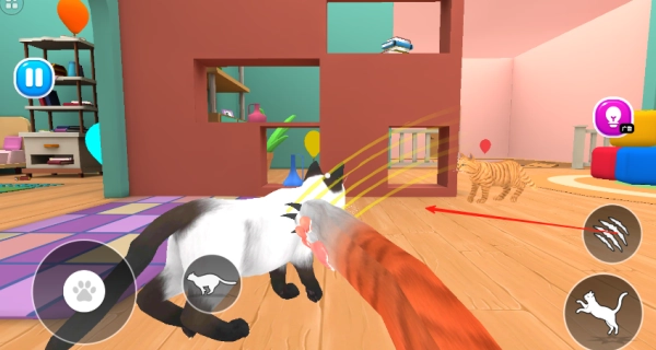 2、与其它的猫咪进行互动,可以打架或者在一起玩玩具之类的,自由的选择。