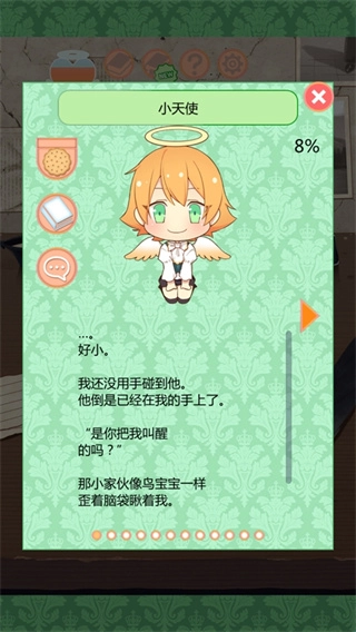 5、翻开笔记本可以浏览游戏故事梗概,查看天使的情况;