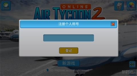 4、接下来你需要注册自己的航空公司,输入一个独特的公司名称,然后点击【next】继续。