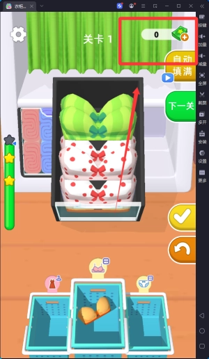 3、衣柜的大小会随着关卡改变,玩家需要合理利用空间将所有衣服全部摆放整齐,增加了游戏的趣味性和可玩性。