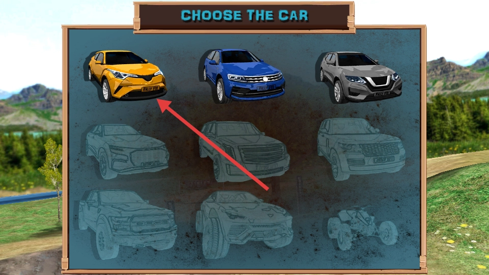 1、选择吉普或皮卡等越野车型,通过金币解锁更高性能车辆。