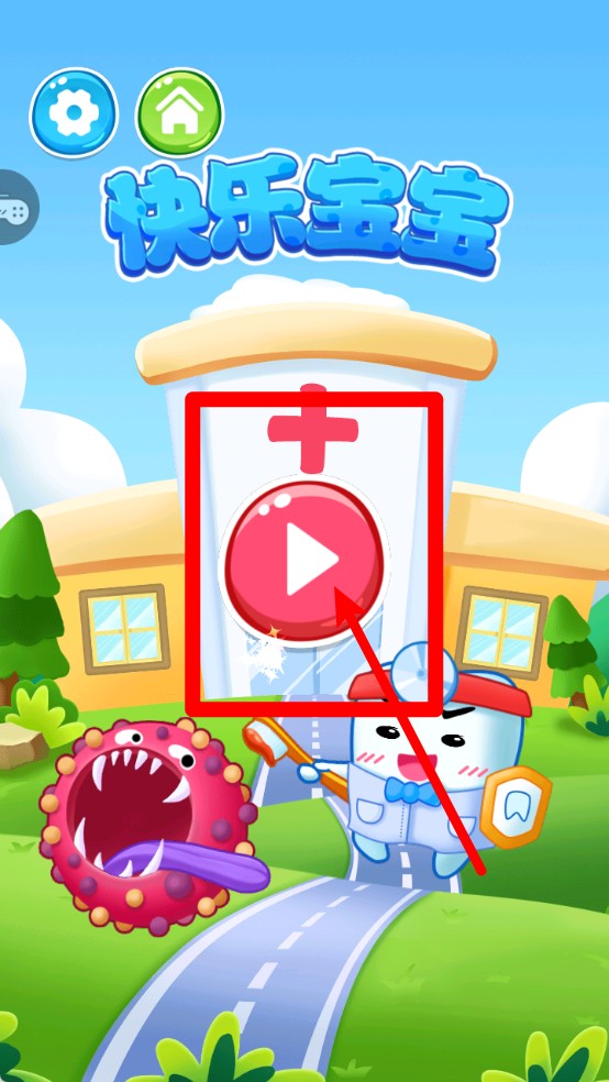 1. 开启游戏操作:在主画面的中间位置,点击红色的播放键,就能踏入快乐宝宝的诊疗世界,为迎接各类挑战任务做好准备。