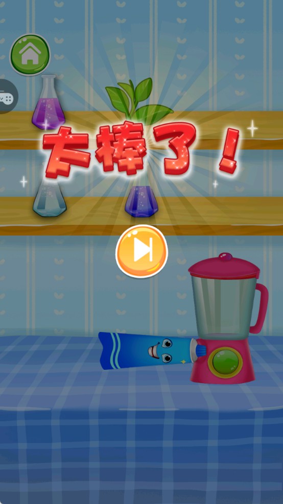 3. 若成功合成牙膏,将会收到提示:当配方准确无误且搅拌操作完成后,屏幕上会弹出“太棒了”的提示动画,这意味着牙膏制作成功,可继续正常使用。