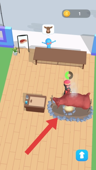 3、在游戏中,玩家负责经营餐厅。画面里呈现出金币、角色、烤肉设施、顾客用餐场景以及金币收益等诸多元素。玩家需要进行烹饪美食、服务顾客、收获金币等一系列操作,从而亲身体验餐厅经营的完整流程。