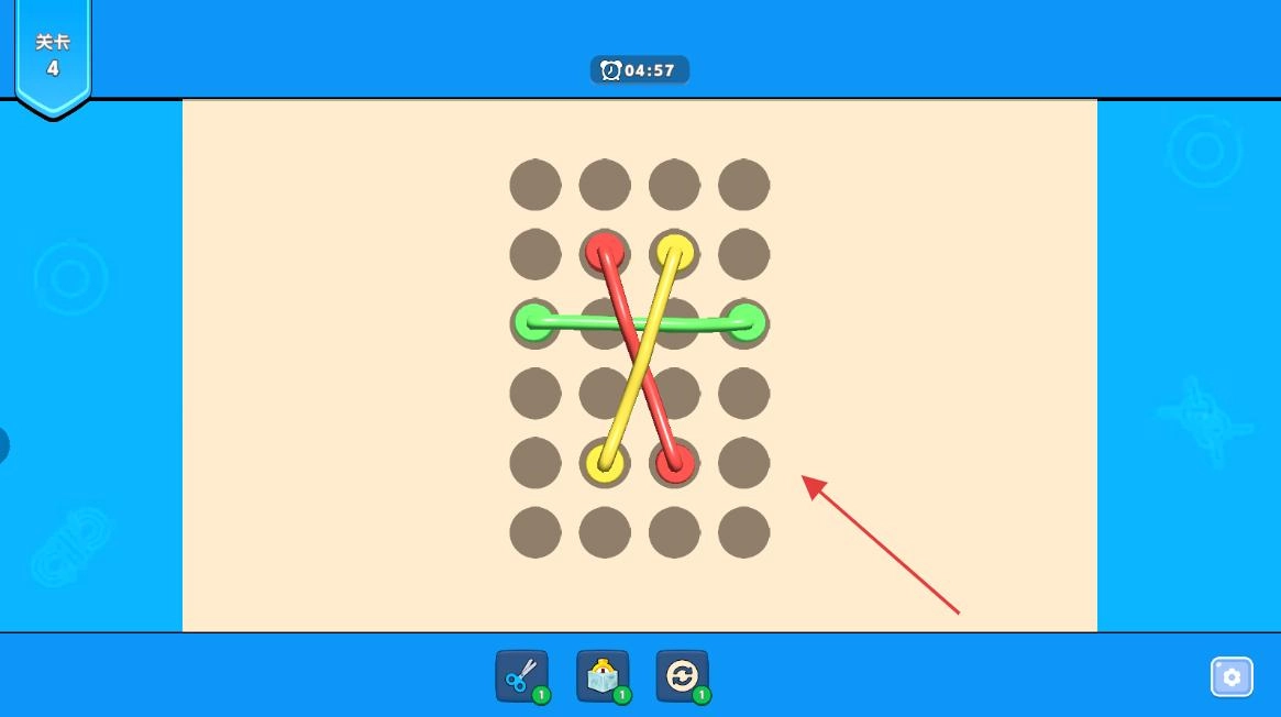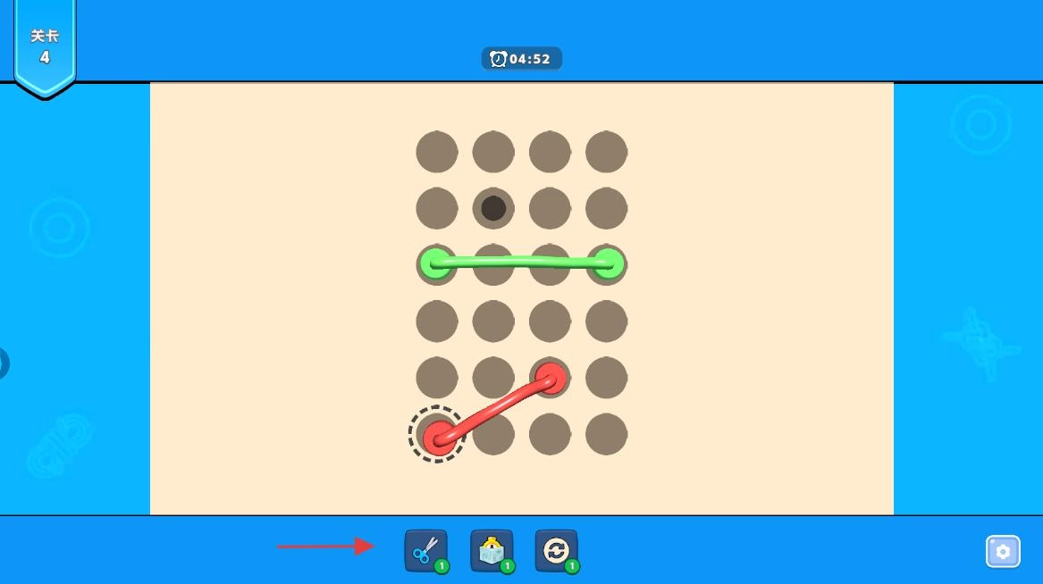 3、完成绳索位置调整后,若布局未达标,点击底部剪刀工具,剪断指定绳索,重新规划连接方式。