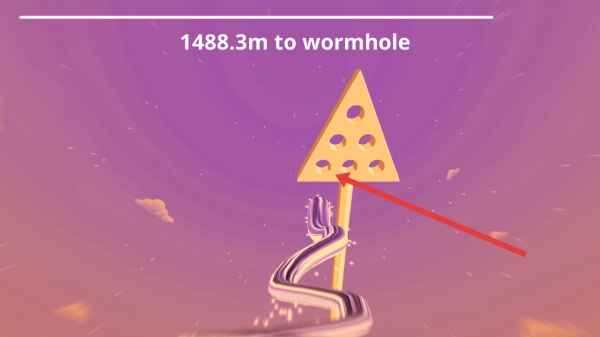 1. 点击“touch - to - start...”即可进入游戏,在游戏中操控黑洞朝着目标(比如奶酪形标识)移动,在移动过程中吞噬路径上的物体,以此向虫洞(wormhole)推进。