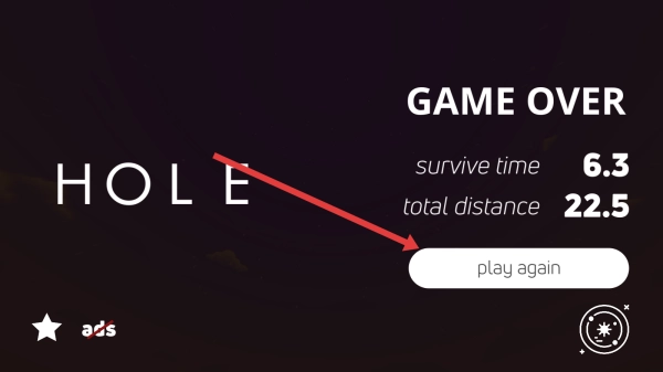 3、游戏失败(GAME - OVER)后,点击【play - again】重新开始游戏,调整策略,尝试达到更远的距离、实现更长的存活时间,刷新游戏纪录。