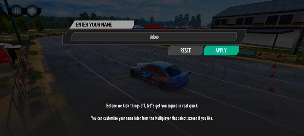 1、打开漂移赛跑者游戏,新玩家需要取一个昵称;