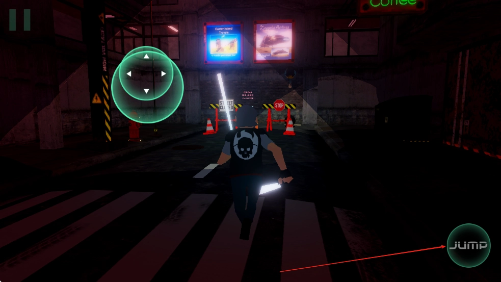 2、在游戏过程中,要密切留意彩色方块上的方向标识,根据标识迅速切换横斩或竖劈动作。当遇到紫色障碍条时,需向上滑动进行闪避,与此同时,收集沿途的音符能量,以此提升连击数。