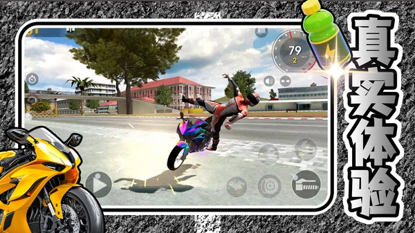 1、玩家可以控制摩托车去驾驶,享受快速的架势体验。