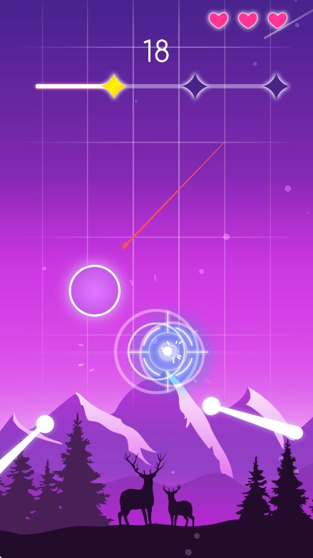 1. 进入游戏后,通过查看上方显示的分数18以及爱心数量,来了解自身状态,同时观察界面中出现的光效等元素。