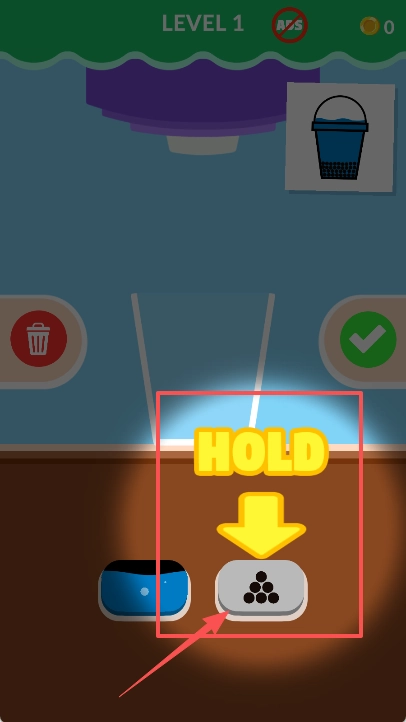 1. 进入关卡1,点击黄色HOLD按钮并按住,接住从下方掉落的小球。