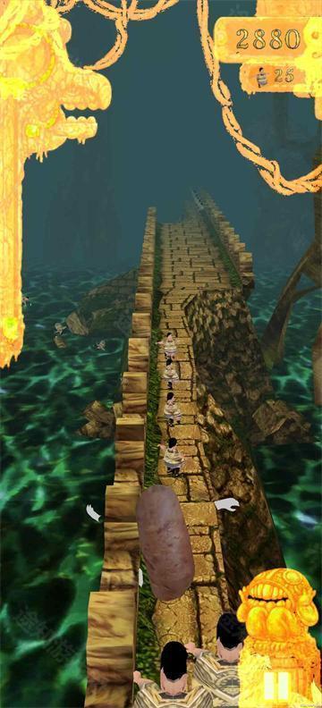 2、玩法与神庙逃亡相同,玩家操控焖子躲避陷阱,以跑出更远的距离。