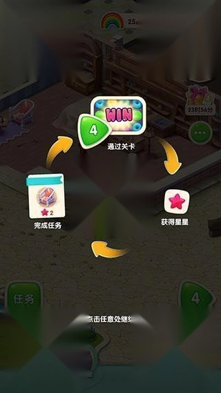 1、游戏最基础的玩法为:历经关卡、获取星星、完成任务,如此循环。