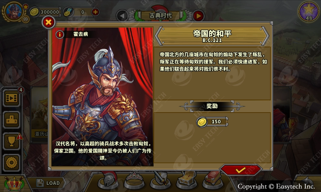 在“古典时代”,有4位英雄登场:列奥尼达、亚历山大大帝、霍去病以及凯撒。