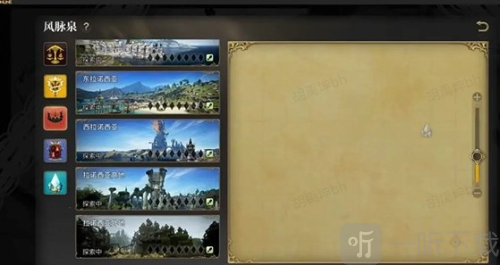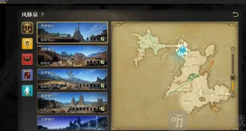 11. 玩家摸取操作完成后,风脉泉界面的地图上会呈现已完成的风脉泉所处位置。