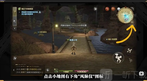 7. 玩家抵达野外地图后,点击小地图右下角的风脉仪图标,该图标会向玩家显示距离最近的风脉的距离与方向,之后便需玩家自行前去探寻。