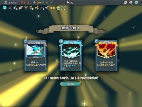 4. 在出手之前,除了考量能量,对手的意图自然也不容忽视。每个怪物头顶会出现不同类型的符号,这些符号代表着对方的下一步行动,比如对你造成10点多的伤害,或是施展自身技能等等。一定要将这些因素纳入考虑范围,才更有可能完美地战胜对手。当你成功处理完所有怪物后,就能获得金币,并且拥有从三张卡片中挑选一张的机会。在此提醒,可别盲目看到什么就拿什么,因为随意选择可能会降低后续抽到强力卡片的概率哦~