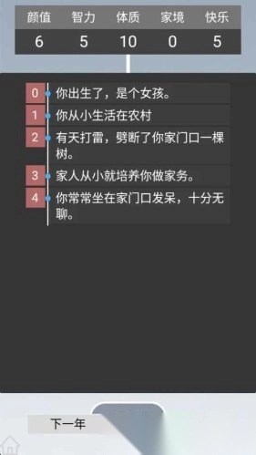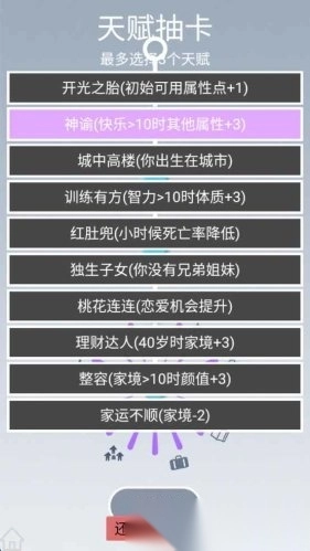 1在游戏开局的角色创建环节,你能够自主对数值属性进行调整,这些属性涉及颜值、智力、体质、天赋以及家庭背景等多个方面。