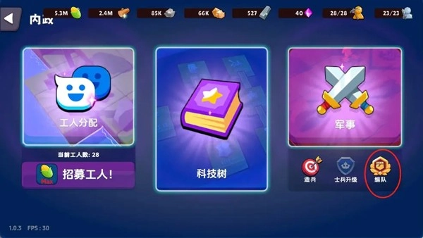 (1)点开科技面板,右下角同样会出现编队按钮。进入编队界面后,在上方三个配有武器的框框里,挑选自己打算调整的编队框,接着点击下方的士兵,就能把士兵添加到所选的编队框中。总共能够创建四个方队(向右滑动便能看到第四个框框)
