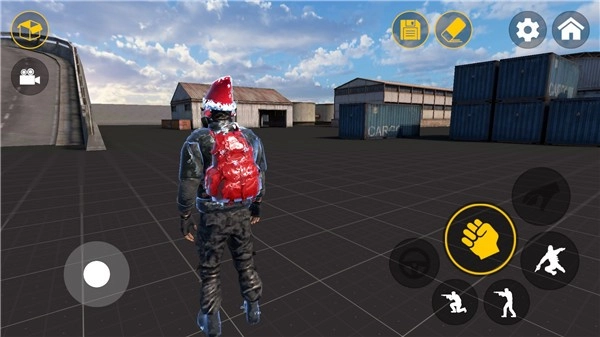 2、进入沙盒世界,借助左右两侧的虚拟按键来控制人物进行移动、跳跃、蹲下、射击等操作。