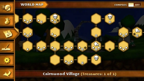 3、此处为地图面板,骷髅标志意味着boss战,房屋标志表示存在村庄,也就是旅馆和商店所在之处,拱门标志则代表设有传送门。星号用于展示本图宝箱的收集进度。