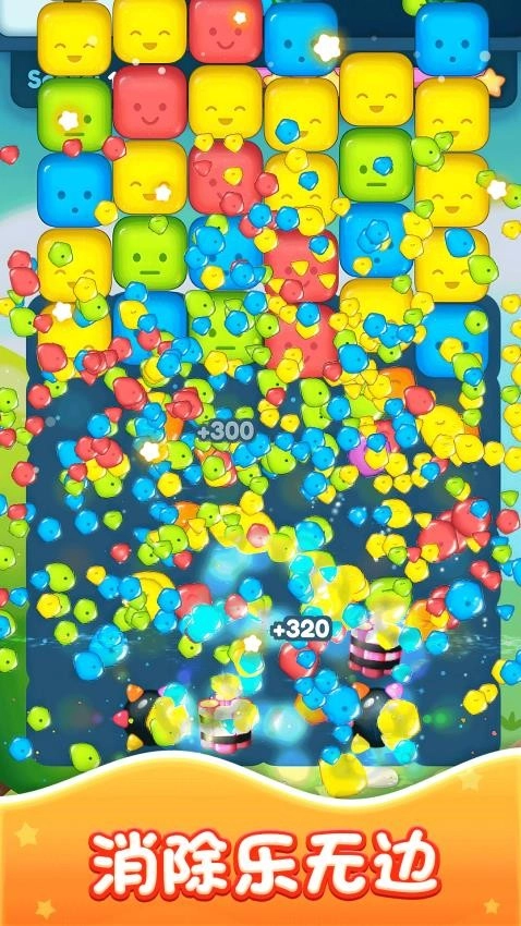 4、全新果冻消除体验来袭!点击相同颜色的果冻即可触发消除,借助消除后生成的道具获取高分,玩法极具魔性,一旦上手就根本停不下来!