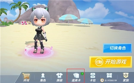 1. 在游戏大厅界面,“开始游戏”按钮的左侧存在一个“道具卡”按钮,点击此按钮,将会进入道具卡界面。