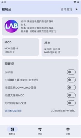 2. 在Mod页面,点击“刷新”即可扫描Mod。默认情况下,系统会扫描控制台配置的Mod目录。若需扫描QQ目录和系统目录,请前往控制台进行开启操作。