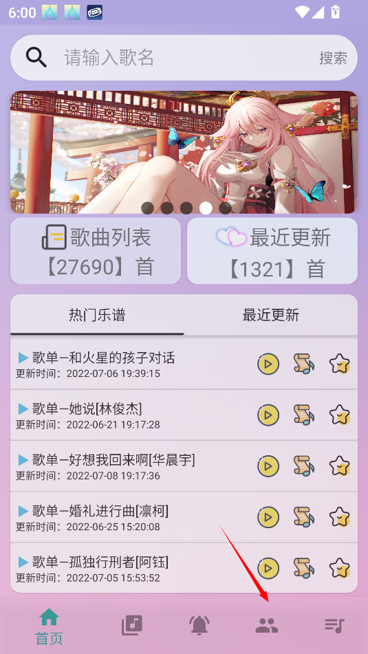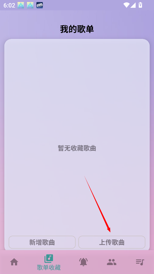 1、在相应界面中切换至歌单收藏页面,然后点击上传歌曲按钮。