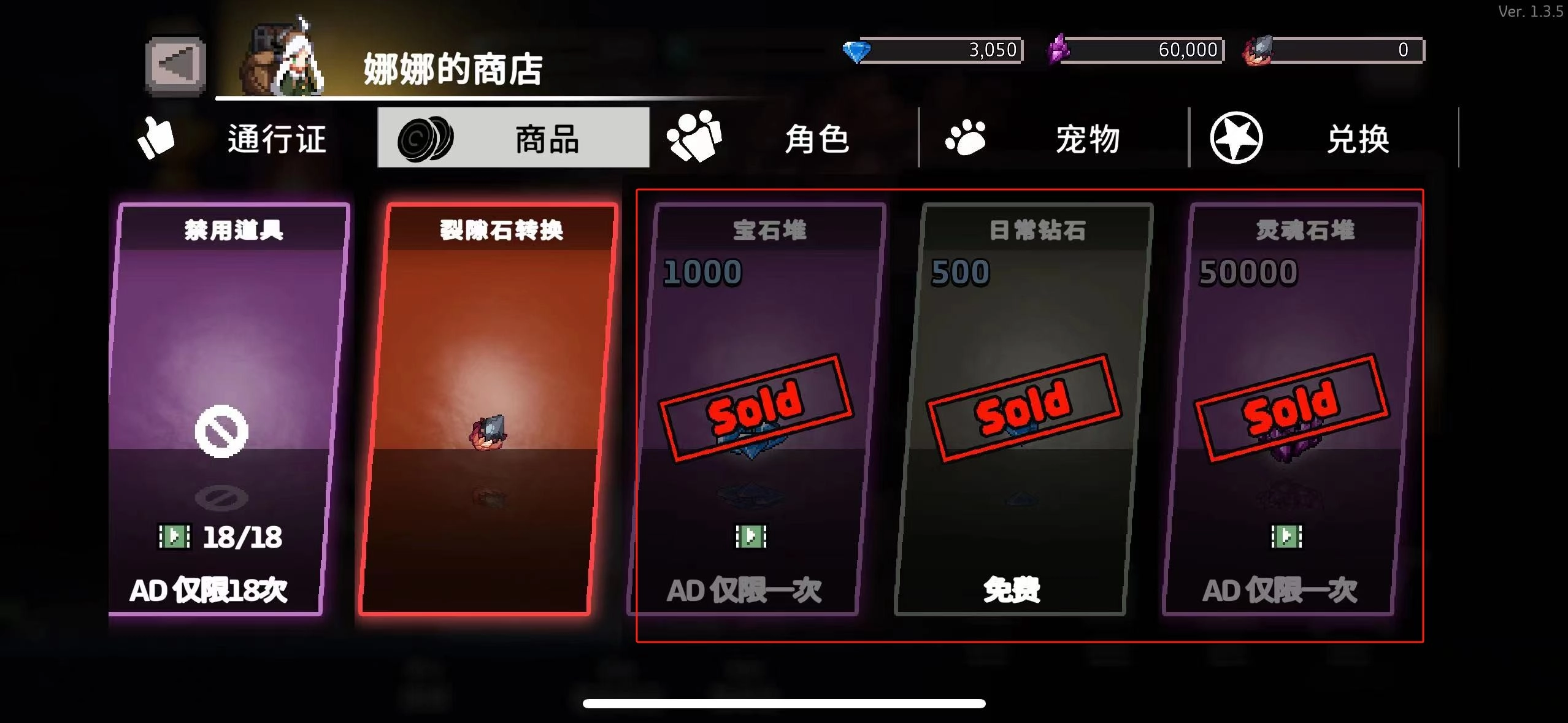 4. 游戏商城点数包含:1000钻石、500钻石、5W灵魂石、1张3倍券、1W钻石以及260个ban位