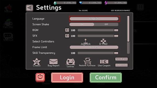 1、刚进入游戏时显示为英文,点击页面上方的设置按钮