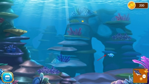 2、游戏内如图,玩家需通过滑动屏幕来控制小鱼移动;