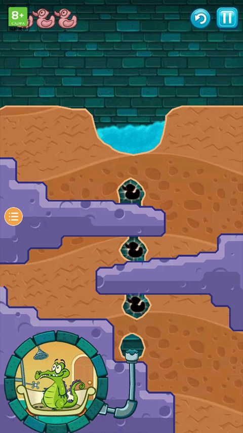 5、引导水流顺利抵达小鳄鱼所处位置,使小鳄鱼能舒舒服服地洗个澡,如此便可通过此关卡。