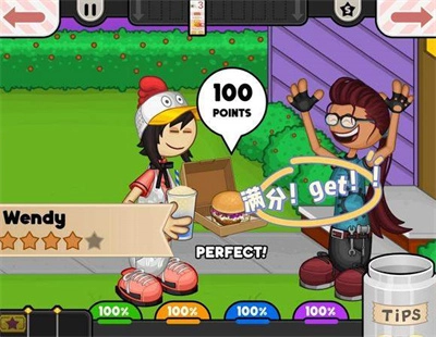 5、老爹的小镇汉堡店游戏中汉堡获得满分的截图