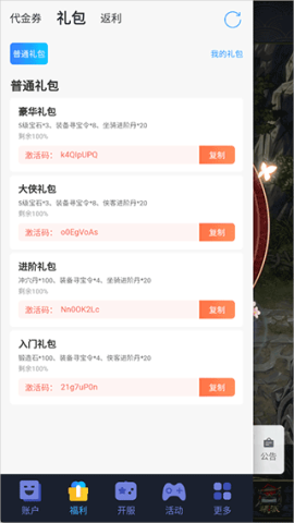 2. 礼包激活码将会呈现,复制之后前往进行兑换。