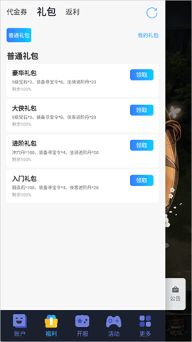 1、当您进入游戏之后,可在福利界面领取属于您的福利。