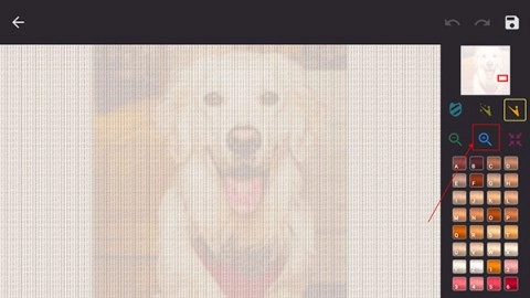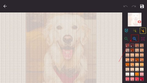 6、右上角的缩略图,能让你清楚看到自己所绣区域在整幅图中的位置,一目了然。保存游戏进度也十分轻松,下次再来,就能接着完成那幅尚未绣完的图。