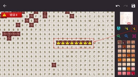 5、即便偶尔绣错也没关系,游戏会提示错误数量,利用右侧的清除工具,轻轻点击一下,就能将出错的部分清除掉,及时修正错误也是游戏的一大乐趣所在。