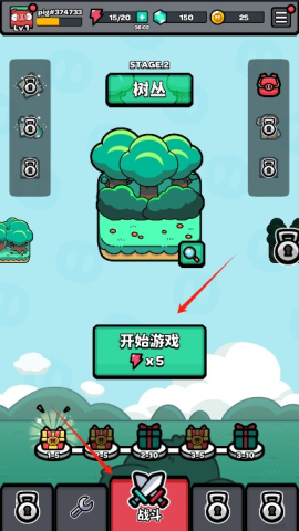 3、完成升级后,进入战斗页面,点击“开始游戏”。
