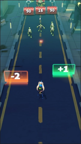 2. 该游戏的玩法融合了跑酷与射击两种元素,玩家要操控角色避开障碍,并打败僵尸。