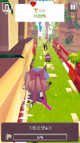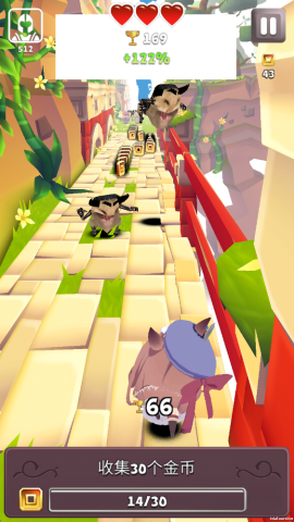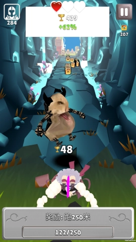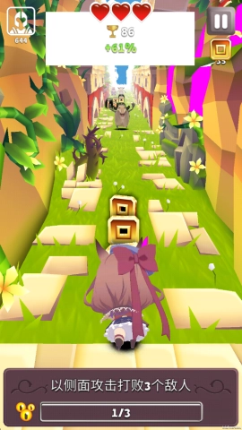 2、于风驰电掣的跑酷途中,奋力击退挡路的怪物,砸破那些隐匿着稀有道具的宝箱,拾取闪闪发光的金币,一路绽放光芒。