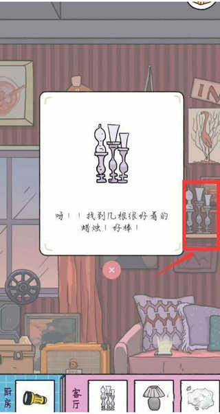 1、玩落樱小屋游戏时,遇到停电那一关,得找到手电筒、蜡烛、台灯、打火机这些对应的应急物品,才能通关。