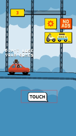 1、玩家完成游戏后,点击进入游戏界面,点击TOUCH区域,启动红色小车,开启惊险的旅程。