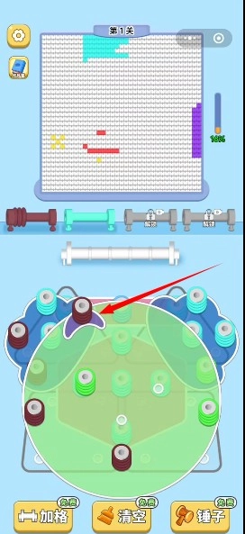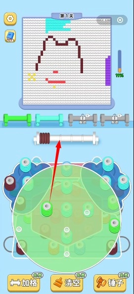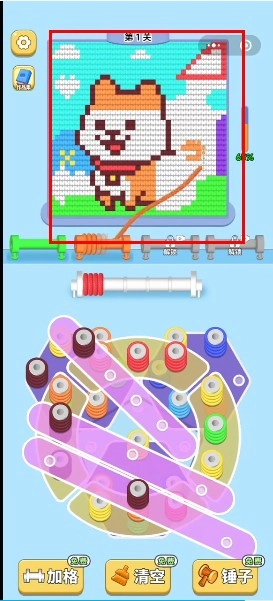 2、当柱子上被对应颜色的毛线缠满后,便会自动填充到上方的拼图里,进而完成挑战。