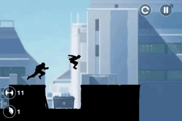 6、在游戏中,人物被弱化为黑色的影子,如此一来,你的注意力便会聚焦于跑酷之上。