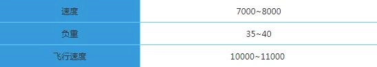 速度 6500~8000 飞行速度 8000~9000 负重 35~45分布: