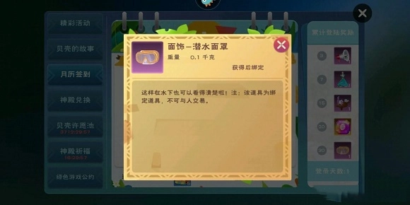 2、之前玩家获得的面饰潜水面罩可以使用在水里看得更清楚。