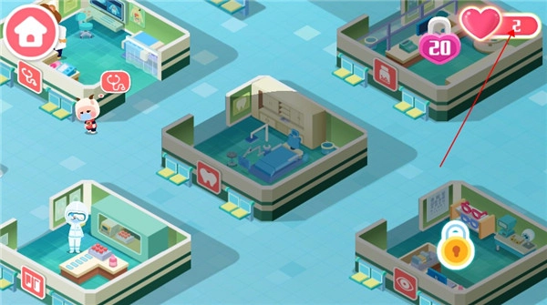 10、解决患者的问题后就可以获得红心奖励,奖励可以用来解锁其他的科室地图。