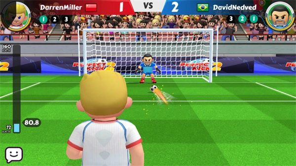 2、在屏幕上朝着球门方向滑动手指,足球就会朝着手指滑动的方向被踢出去。手指滑动的速度越快,足球的速度也就越快,而屏幕左侧的速度表会实时显示出足球的速度。
